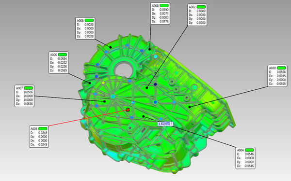 快速準確地獲取了汽車變速箱殼體的3D偏差數(shù)據(jù),準確高效地找到變速箱殼體的誤差,根本上保證了變速箱殼體的生產(chǎn)質(zhì)量安全。同時大大簡化汽車制造業(yè)零部件的生產(chǎn)質(zhì)量把控難度,提高檢測的效率,獲得客戶的認可和好評;另一方面,獲取高精度的三維數(shù)據(jù)讓只有合格的變速箱殼體才能裝配進入汽車,大大保證汽車駕駛工作環(huán)境的安全性,為駕駛者保駕護航!